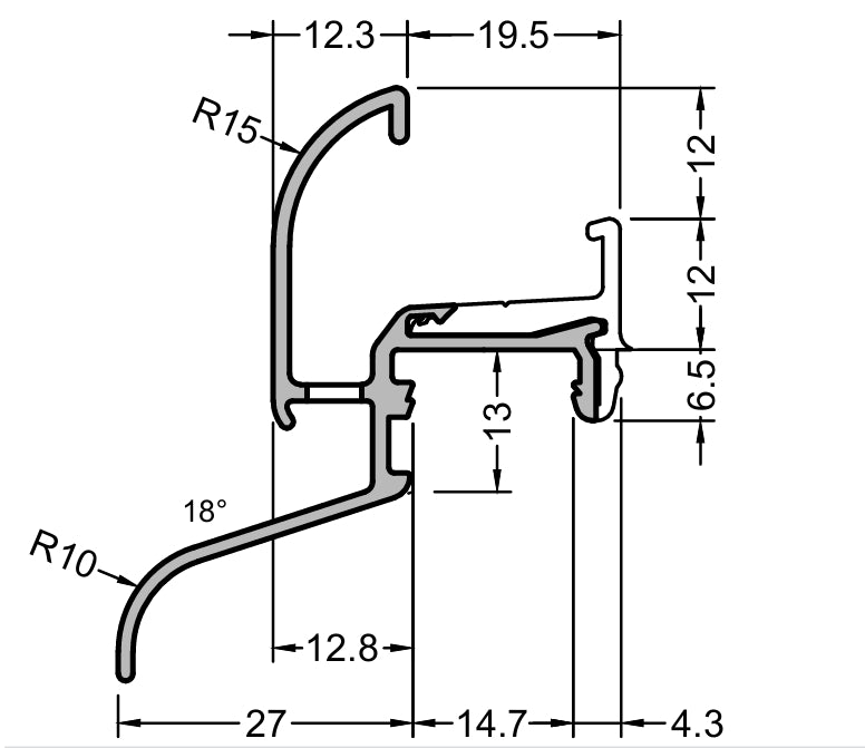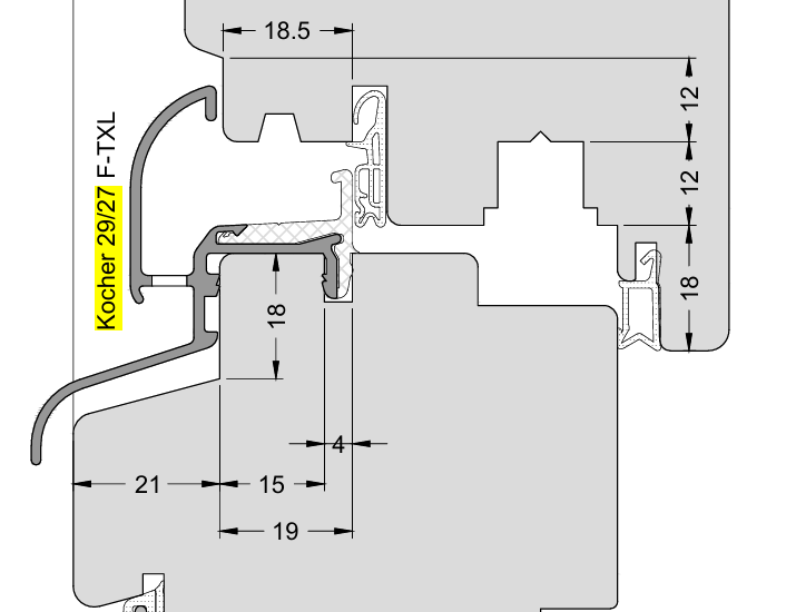 Regenschiene Kocher 29/27 Falzmaß 19 mm